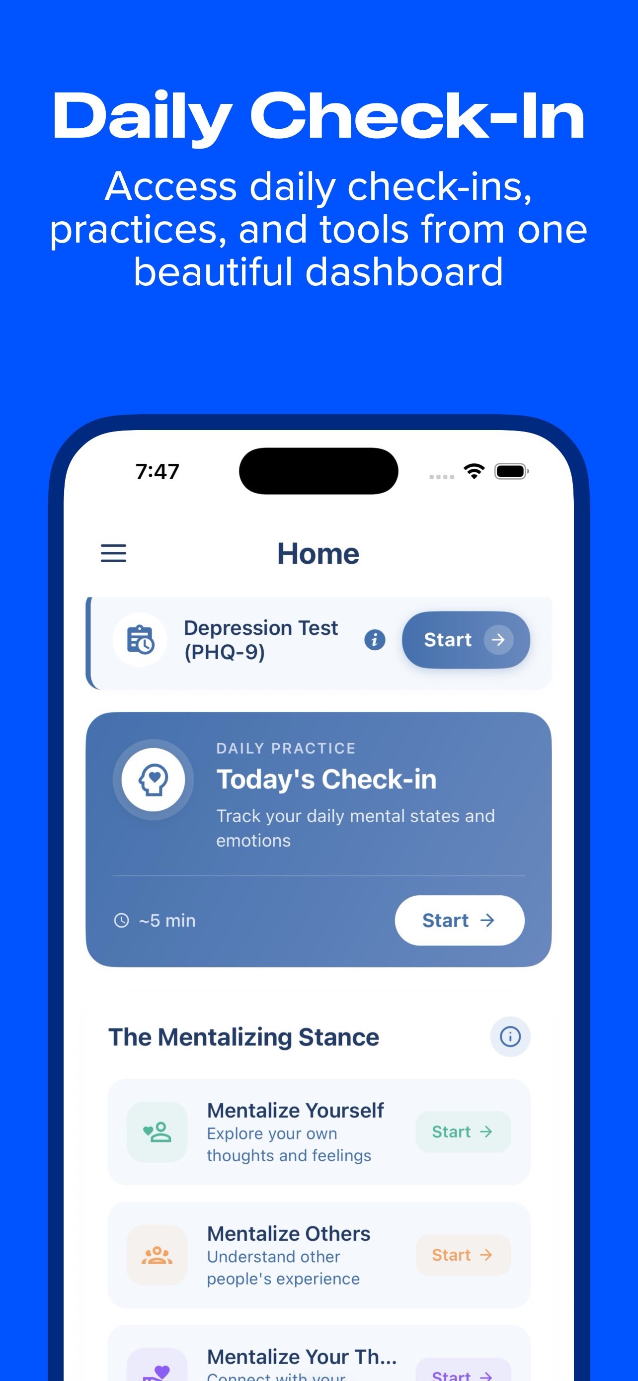 Log your mentalization exercises and track your daily practice progress.